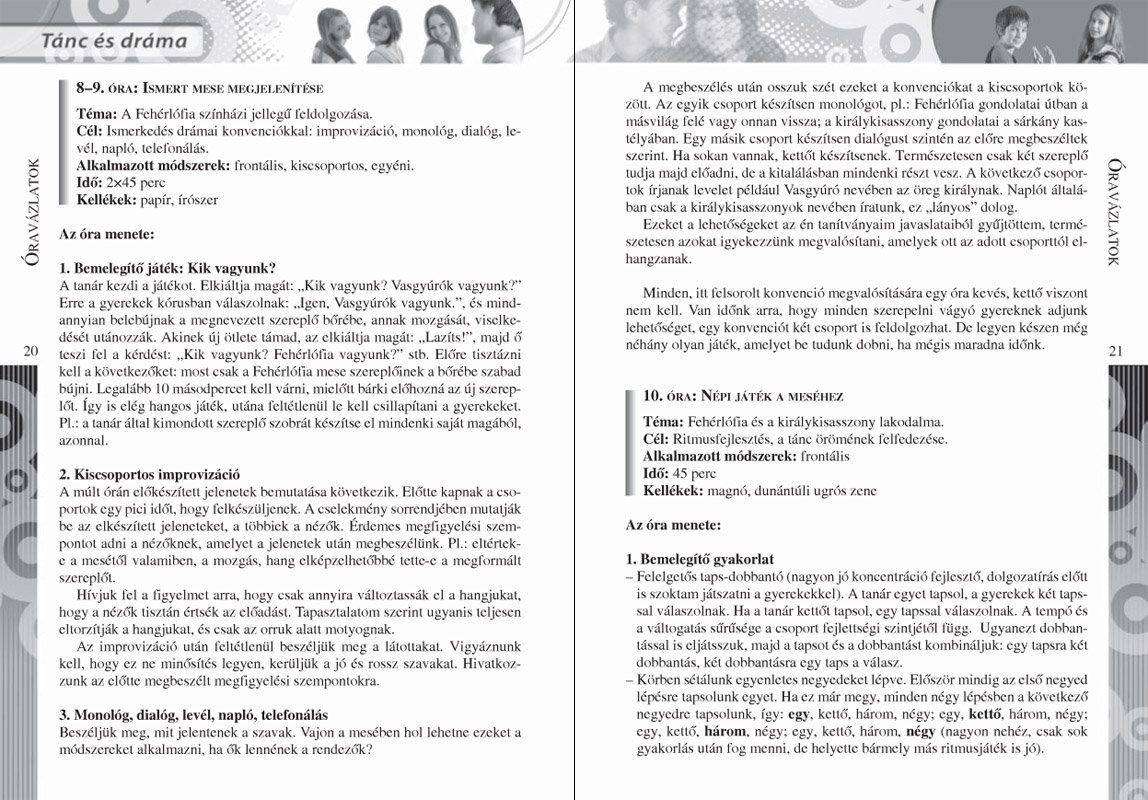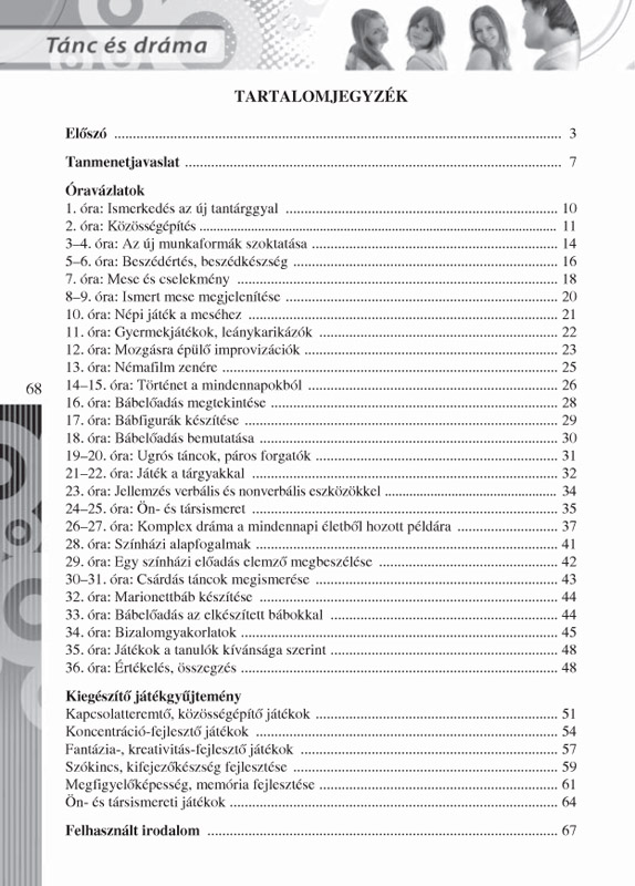 Ez a kis könyvecske a kezdőknek abban segít, hogy ők kevesebbet hibázzanak, a gyakorlottaknak pedig abban, hogy új ötletekkel bővítsék, színesítsék repertoárjukat, illetve megerősítést kapjanak arról, hogy jó úton haladnak. A szerző saját tapasztalatait adja közre, óravázlatokkal és tanmenettel segíti a drámapedagógusok munkáját. Részletesen leírja a tanmenetben feltüntetett gyakorlatokat, illetve néhány játékot önállóan is közöl, megjelölve, hogy milyen céllal használhatóak a drámaórán (és más órákon is). Mindez természetesen csak egy ötlettár. Válogasson belőle mindenki a saját nézete, véleménye, személyisége szerint.
