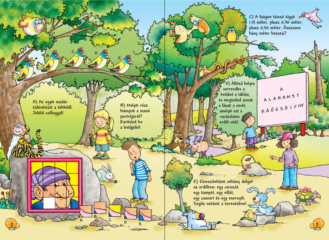 Azok a gyermekek, akik fellapozzák a játékos foglalkoztatót, egy elvarázsolt erdőben találják magukat. Különös állatok, fantasztikus teremtmények várják őket, hogy gondoskodjanak jókedvükről. A mókás rajzokkal illusztrált füzetben számos izgalmas feladvány biztosítja, hogy a gyermekek mosolygás közben is tanuljanak, tanulás közben is mosolyogjanak.