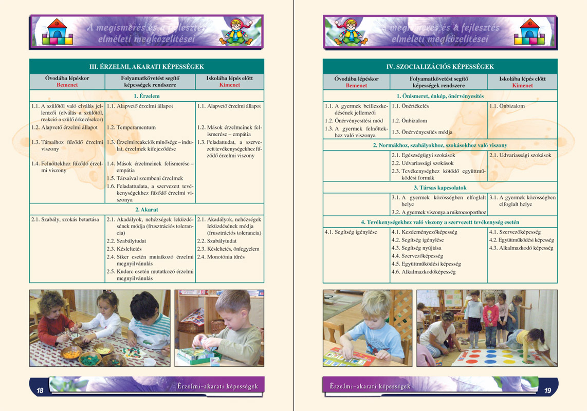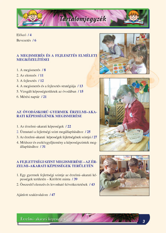 Ez a kötet egy olyan objektív megismerési eljárásba nyújt betekintést, amellyel nyomon követhető gyermeke érzelmi-akarati fejlődésének néhány kiemelt fontosságú területe, megállapítható aktuális fejlettségi szintje. A vizsgálat játékos szituációkban történik, amelyekhez hasonlókat Ön is kitalálhat. A megismerés során fényt deríthet azokra a zavarokra, hiányosságokra, amelyek kezelése, pótlása miatt gyermekével szakemberhez kell fordulnia. Ugyanakkor alapja lehet egy beszélgetésnek, amely során kiderülhet, hogyan és mivel támogathatja Ön az óvodapedagógus munkáját, azért, hogy gyermeke minél gyorsabban és látványosabban fejlődjön ezen a területen.