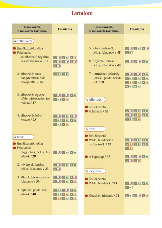 A sorozat második kötete segítségével tovább bővíthetik a már tanult műfajokkal kapcsolatos ismereteiket azok a tanulók, akik felzárkóztatásra szorulnak, vagy éppen a tehetségüket szeretnék kibontakoztatni. A példaszövegek és a feladatok szorosan kapcsolódnak az irodalom tantárgy kerettantervi témaköreihez: pl. Arany János: Toldi; Petőfi és Arany levelezése; Gárdonyi Géza: Egri csillagok; Fekete István: Tüskevár; Téli berek. A logikusan egymásra épített feladatok segítségével a tanulók fokozatosan ismerkedhetnek meg a fogalmazás rejtelmeivel, otthoni gyakorlás esetén saját tempójukban, a különböző nehézségű feladatok között válogatva, teljesítménykényszer nélkül gyakorolhatják be az egyes lépéseket.