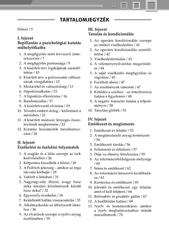 Aki tanított már valaha életében, jól tudja, milyen nehéz a tanulók érdeklődését kiváltani és fenntartani, bármely tantárgyról is legyen szó. Különösen így van ez a pszichológia esetében, amely a maga elvont ismeretanyagával nem a legkönnyebben tanítható (és tanulható) tantárgyak közé tartozik. Ennek a könyvnek éppen az a célja, hogy megkönnyítse a tanárok számára a pszichológia tanítását. Gyakorlatainak alkotó felhasználásán keresztül szemléletes módon mutathatók be a pszichológia különböző témái, és a saját élményként szerzett tapasztalatok nyomán a tanulókban jobban megmaradnak az elsajátítandó ismeretek. A könyvet elsősorban azoknak ajánljuk, akik kellő képzettséggel rendelkeznek ahhoz, hogy pszichológiát tanítsanak, de azokhoz is szól, akik egyszerűen csak érdeklődnek a pszichológia iránt.