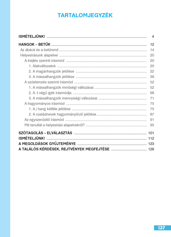 A feladatgyűjtemény végén található a megoldások gyűjteménye és az ajánlott tollbamondási szövegek.