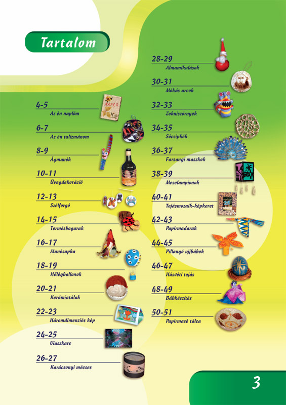 Saját kezűleg elkészíthető ajándékot keres? Szeretné unalmassá vált szobáját apró tárgyakkal feldobni, megújítani? Gyermekei arra kérték, fellépésükhöz készítsen színpadi kellékeket? Kis kézügyességgel készíthet farsangi álarcokat papírmaséból, talizmánokat kavicsfestéssel, mikulást termésekből, manósapkákat batikolt virágcsomagoló papírból vagy képkereteket tojásmozaik technikával. A sikert eszközlista, részletes leírások, ötletes tippek és fortélyok garantálják. A kreatív ötletek megvalósítása nagyon sokféle képességet fejleszt. A gyermek kezdetben csak utánozza, másolja a mintadarabokat, ez a reprodukáló képesség az írás és olvasás előfeltétele is. Rajzolás, festés, a papírmunkák kivágása, ragasztás, hajlítás közben fejődnek a koordinációs képességek, a kismozgás (finommotorika), a figyelem, a térbeli tájékozódás, a szem-kéz koordináció. A kézügyességet fejlesztő tevékenységek kedvezően befolyásolják a gyermek kitartását, türelmét, precizitását is.