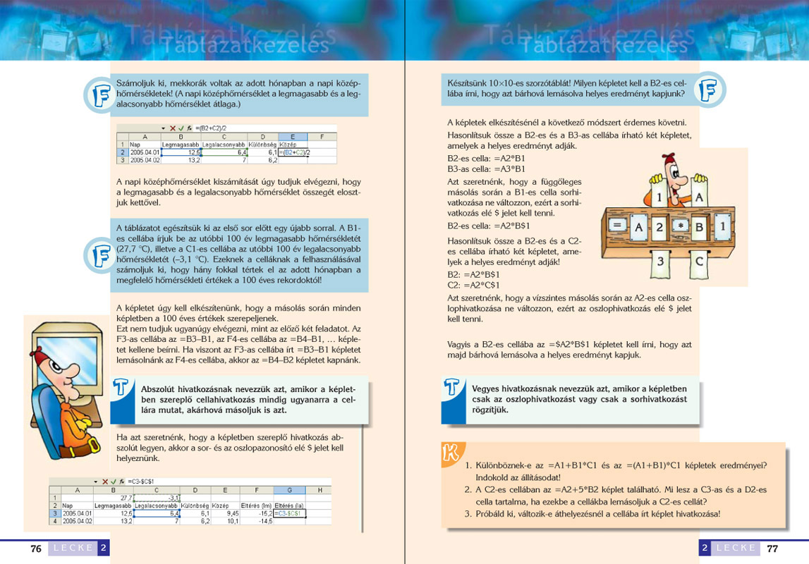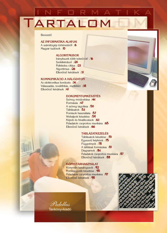 A tankönyv betekintést nyújt a számítástechnika történetébe, és néhány magyar tudós életébe. Megismertet az algoritmusok világával, tovább bővíti a Logo nyelvi ismereteket. Az internet felhasználási lehetőségei közül az elektronikus levelezést mutatja be. További jártasságot biztosít a dokumentumkészítésben és megtanítja a weblapkészítést. Végül bevezet az adatgyűjtés, az adatok táblázatba foglalása, és a diagramkészítés rejtelmeibe is.