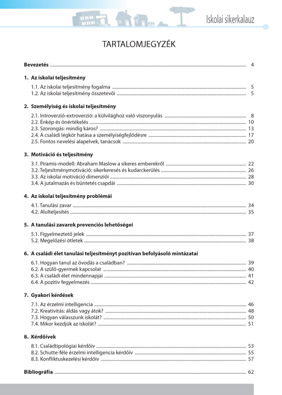 Pszichológus szerzőnk feltárja, mit tehet a család a személyiségfejlesztés terén annak érdekében, hogy az óvodai évek alatt megalapozza a későbbi iskolai teljesítményképességet és a beilleszkedést. Hogyan segíthetjük az egészséges mértékű önbizalom és pozitív énkép kialakulását? Milyen módon alakítsuk ki az önkontrollt, a feladattudatot, az együttműködés igényét és a tudás iránti pozitív attitűdöt? Ilyen és hasonló kérdésekre kaphat választ a könyv elolvasásakor, miközben a szerző konkrét tanácsokkal, példákkal is igyekszik az iskolai teljesítménnyel kapcsolatos elméleti ismereteket a gyakorlattal összekötni.