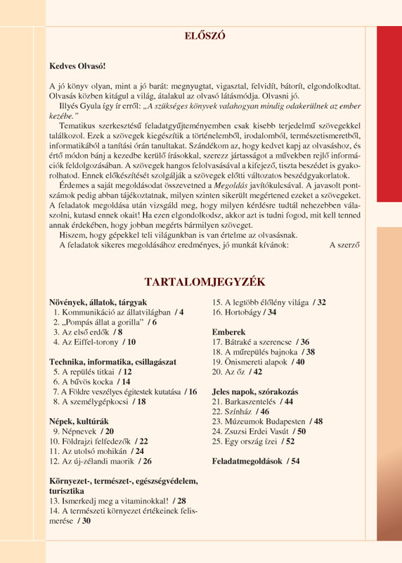 Ismeretterjesztő szövegeket feldolgozó képességfejlesztő feladatgyűjtemény, ami a szövegértés lépéseinek megtanítására vállalkozik. A feladatgyűjteményben minden megfogalmazott feladat tudatosan az anyanyelvi kompetenciafejlesztés egyik legfontosabb célját, a gyermek értő olvasóvá nevelését szolgálják. Fontos, hogy a gyermek értse amit olvas, ismerje fel a szövegben lévő összefüggéseket, tudja alkalmazni az olvasottakat, képes legyen a feltett kérdésekre válaszolni!