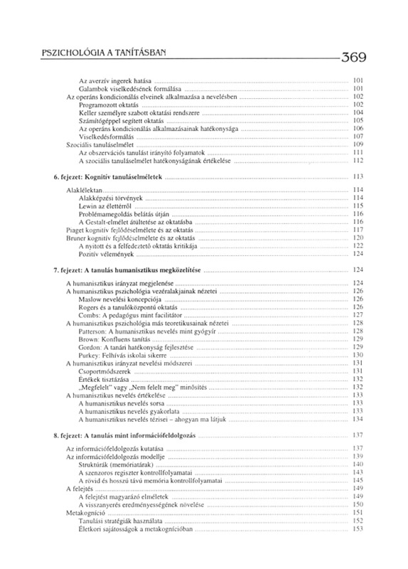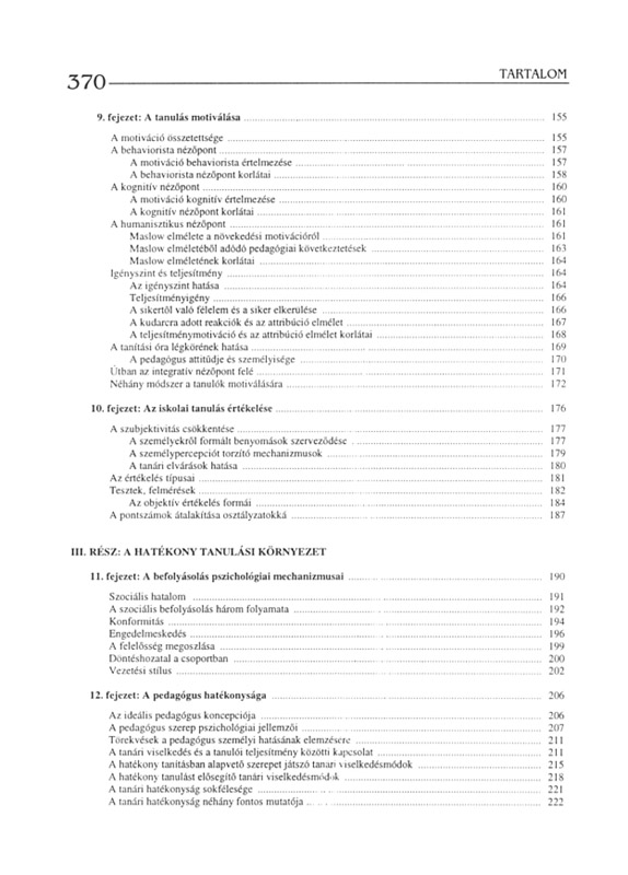 Ez a könyv a pszichológiáról szól – kimondottan pedagógusjelölteknek és pedagógusoknak. Célja, hogy tudományosan megalapozott ismereteket nyújtson rendszerezett formában a fejlődésről, a tanulásról, a motivációról, az értékelésről, az egyéni sajátosságokról, egyáltalán a pszichológiának az oktató-nevelő munkával összefüggő legfontosabb területeiről. Emiatt tartalmában és megközelítési módjában különbözik minden más, a pszichológiát bemutatni kívánó munkától. Tartalmában azért, mert arra koncentrál, amire a pedagógusnak szüksége lehet a pszichológiából, megközelítési módjában pedig azért, mert ezen ismereteknek a gyakorlati pedagógiai munkában, a tanításban való alkalmazását tartja szem előtt. Szempontjai, felvetései új oldalról világítják meg a pedagógiai folyamatot, hozzájárulva ahhoz, hogy a pedagógus a munkáját hatékonyan, tanítványai és önmaga megelégedésére végezze.