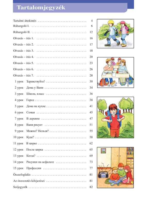 A nyelvkönyv az általános iskola 5. osztályosainak készült, de segítségével más korosztályok is megismerkedhetnek az orosz nyelv alapjaival. A leckék dialógusai, szövegei az élő nyelv fordulataira épülnek. A gyakran előforduló verses forma a könnyebb bevésést kívánja elősegíteni. A mai orosz életből vett képek, reklámok, feliratok, térképek stb. formájában háttérként jelen van a nyelvkönyvben a mai orosz valóság, ugyanakkor segítségükkel a nyelvtanulók megteszik az első lépéseket az autentikus szövegekkel való ismerkedés felé is. Az országismeret más dimenziójú közvetítésére szolgálnak a dalok, közmondások, versikék, nyelvtörők, találós kérdések, játékok.