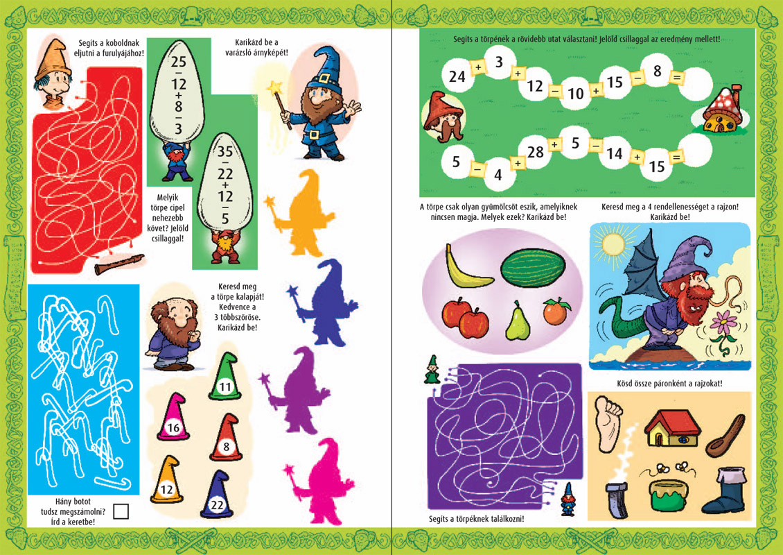 Gyermekének gondjai vannak a figyelemmel, az észleléssel vagy a téri tájékozódással? Azt szeretné, hogy játékos formában gyakorolja a matematikát, a problémamegoldó gondolkodást? Javítani szeretne szövegértő képességén? A füzetekben található fantasztikus fejtörők igazi kihívást jelentenek, miközben kiváló szórakozást is nyújtanak. A harcosok, hercegnők, szörnyek, varázslók és manók mesés világában játékosan fejleszthetők a részképességek, könnyen növelhető a tanulási kedv. Soha ne felejtse el betenni a hátizsákba, ha pihenni vagy nyaralni indul a család!
