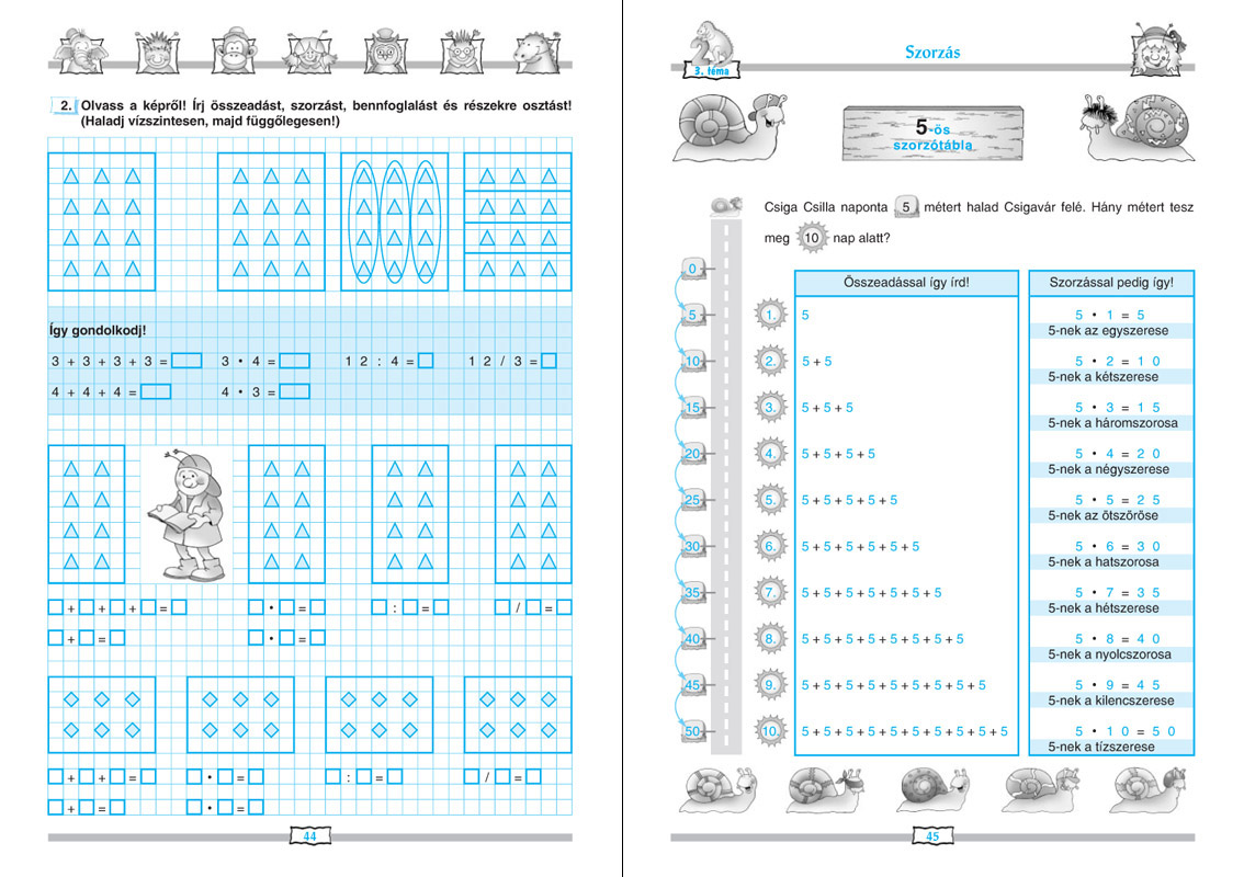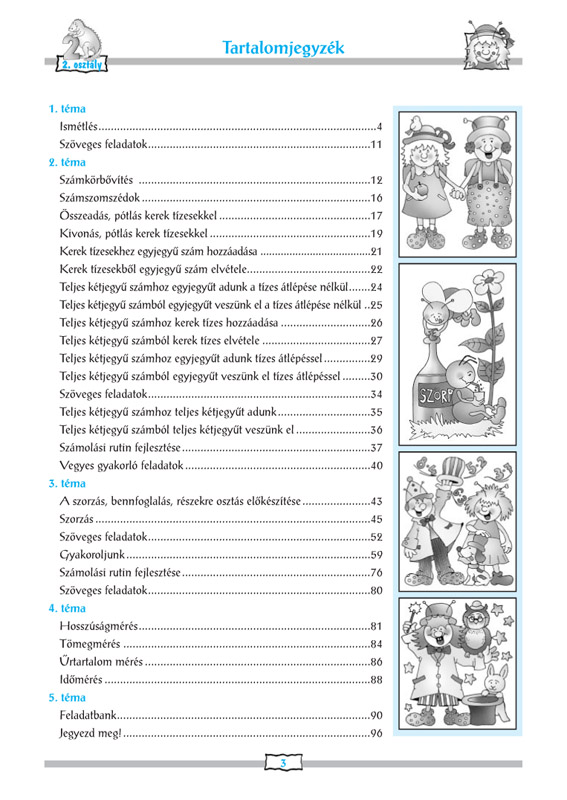 Ebben a könyvben már a 100-as számkörben megtanul a gyermek kétjegyű számokkal összeadni, kivonni, pótolni. Az itt található feladatok megkönnyítik a szorzó- és bennfoglaló táblák egyszerű és gyors megértését, elsajátítását. Folytatódik a nyitott mondatok, a szöveges feladatok, a szabályjátékok magasabb szintű feldolgozása. A pontosabb mérések érdekében bővül a mértékismeret, a mértékegységekkel számoló feladatok köre.