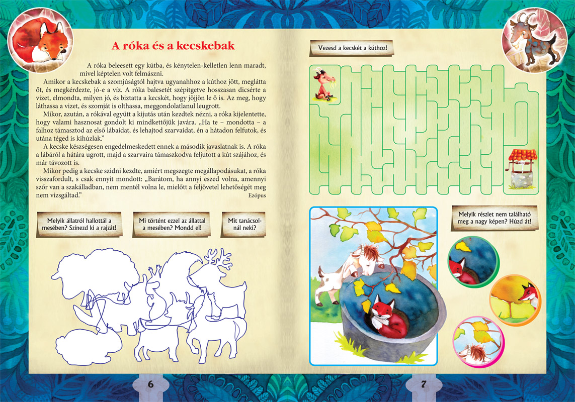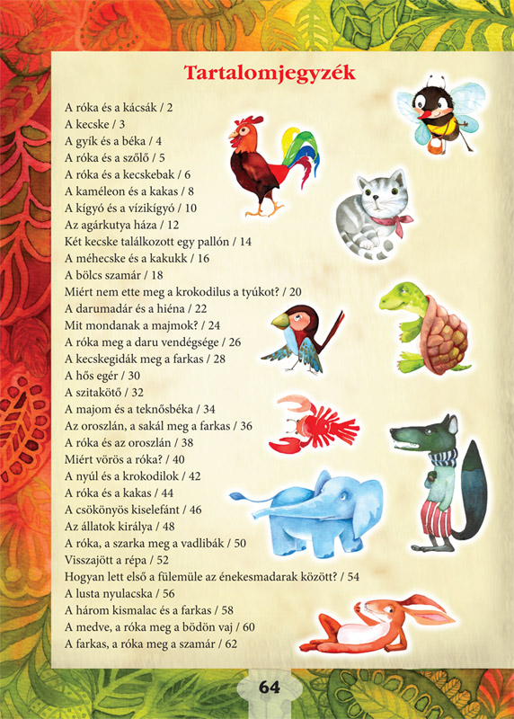 A gyűjtemény rövid állatmeséket tartalmaz, amelyekhez képességfejlesztő feladatok kapcsolódnak. A kötetben több magyar „klasszikus” mellett a gyermekek más európai népek meséivel is megismerkedhetnek, de helyet kapott a válogatásban néhány afrikai és ázsiai történet is. Így a mesék erkölcsi, tanító célzatán túl bővülhetnek a gyermekek állatvilággal kapcsolatos földrajzi ismeretei is.