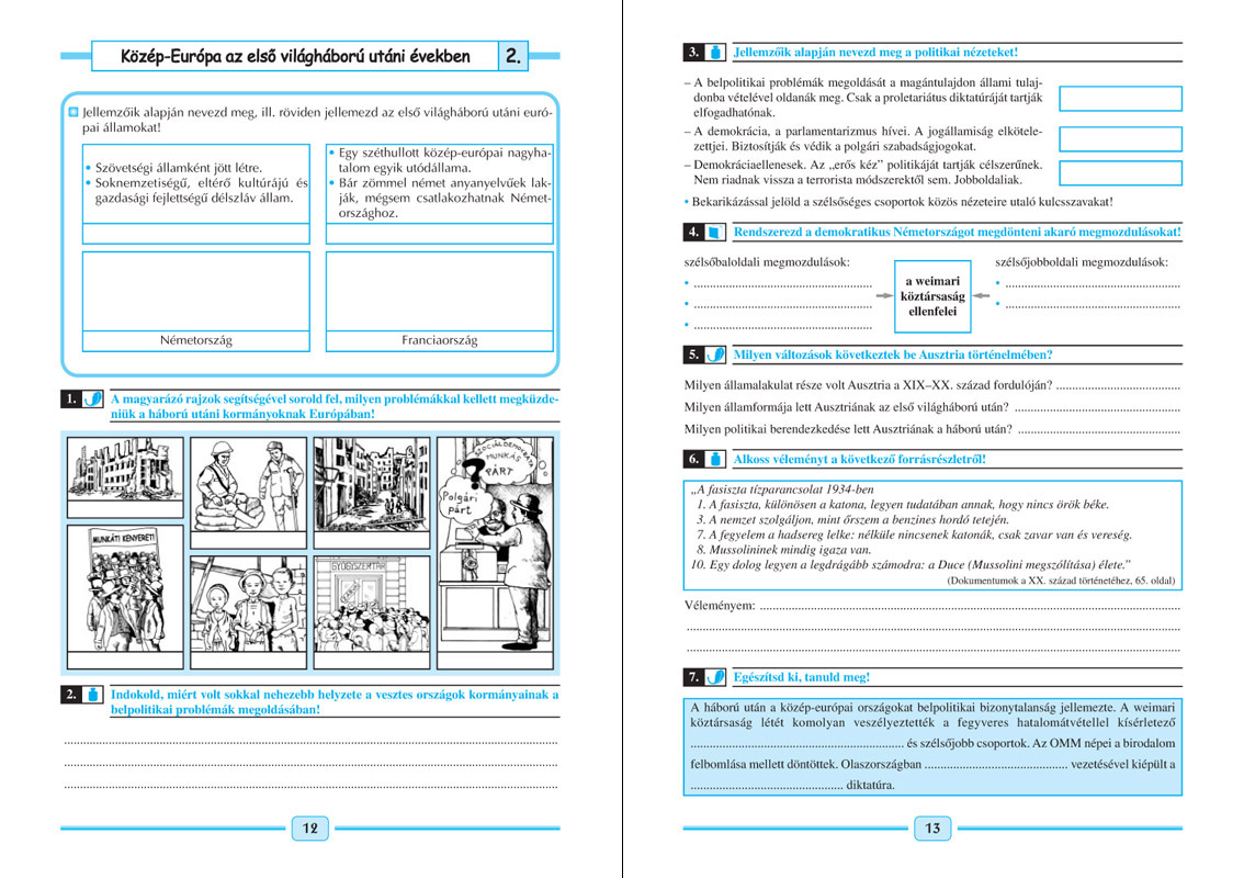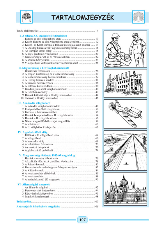 A feladatgyűjtemény változatos, differenciált feladatokkal fejleszti az olyan kompetenciákat, mint pl. információgyűjtés képi, szöveges és statisztikai forrásokból, szerepjáték, vita, kronológiai és topográfiai feladatok, fogalommagyarázatok. A kiadványban számos játékos feladat is található: a tanulók keresztrejtvényt fejthetnek, társasjátékot (Az Európán kívüli világ) játszhatnak. Ez erősíti a tanulási kedvet, mint ahogyan a második világháború helyi eseményeinek megismerésére ösztönző, kutatást igénylő feladatok is.